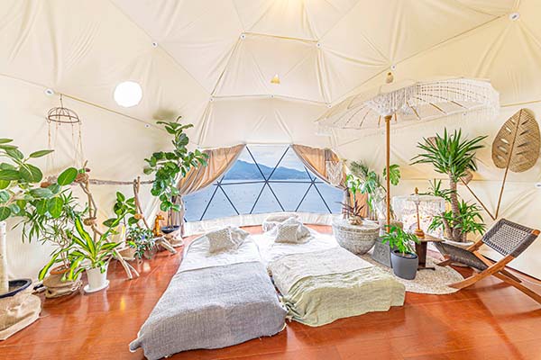 If you look at the ocean from the four shining white “dome-shaped tents” looking like spaceships that were washed ashore, you will forget that you are in Japan.